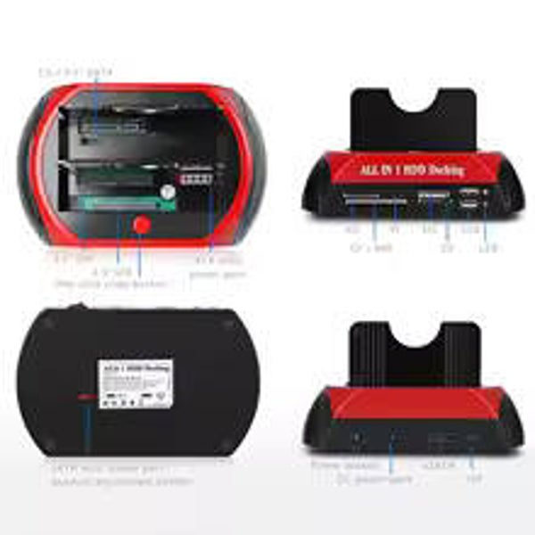 USB 2,0 a IDE SATA disco duro OTB clonación Dock todo en uno HDD estación de acoplamiento doble bahía 2,5 pulgadas 3,5 pulgadas eSATA con lector de tarjet